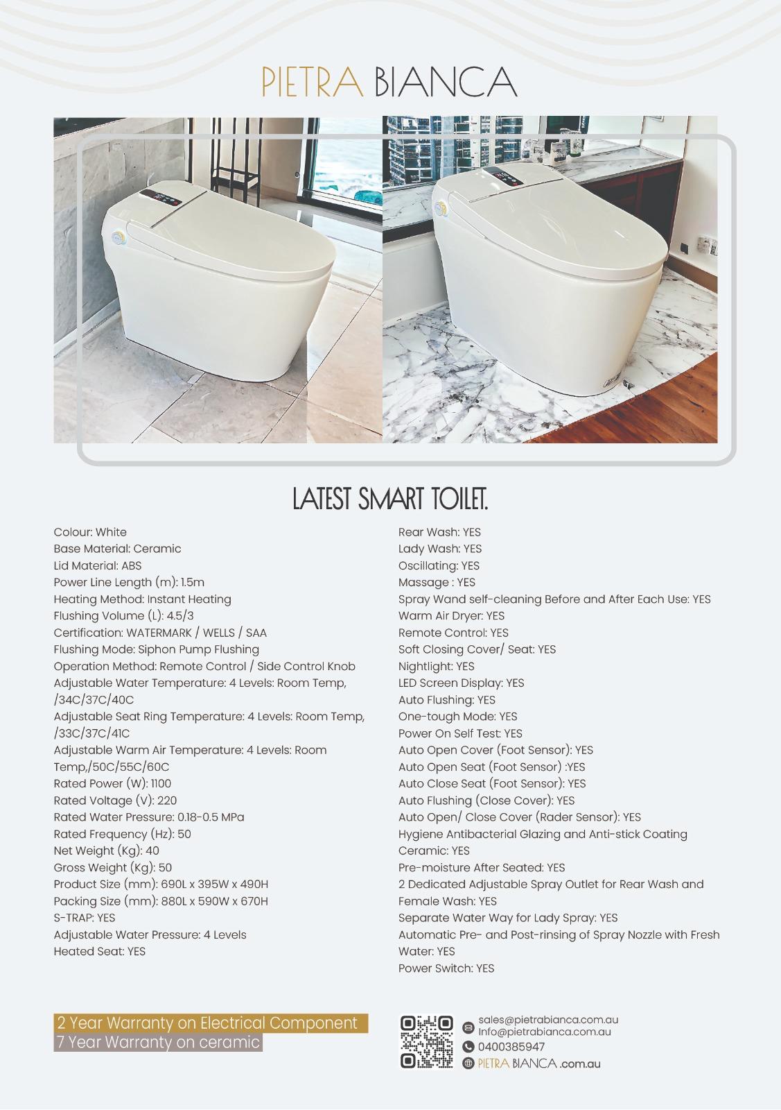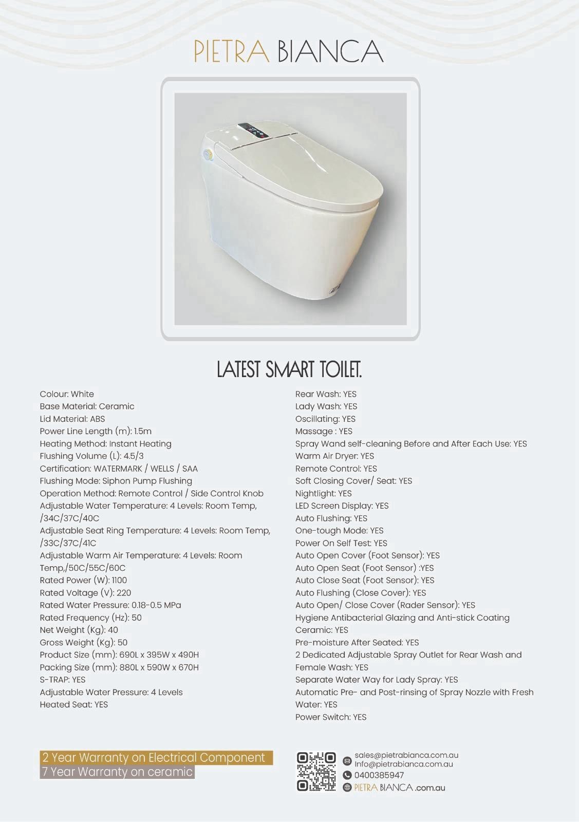Bring intelligence and comfort into your bathroom with the Pietra Bianca Smart Toilet – where design meets innovation.